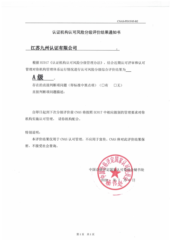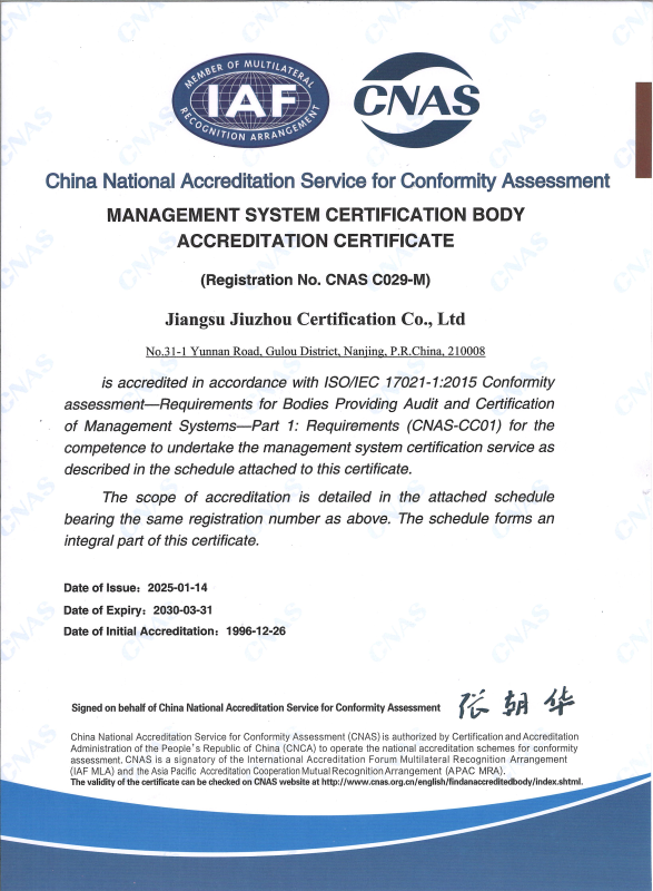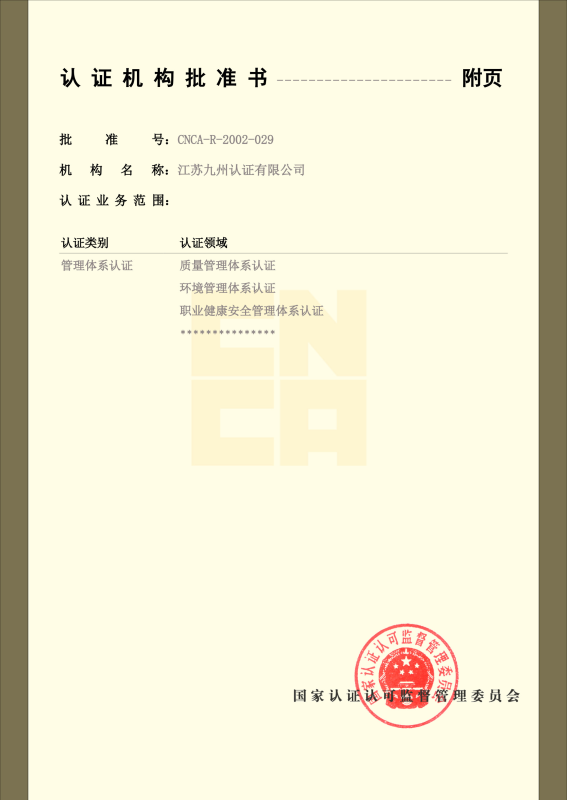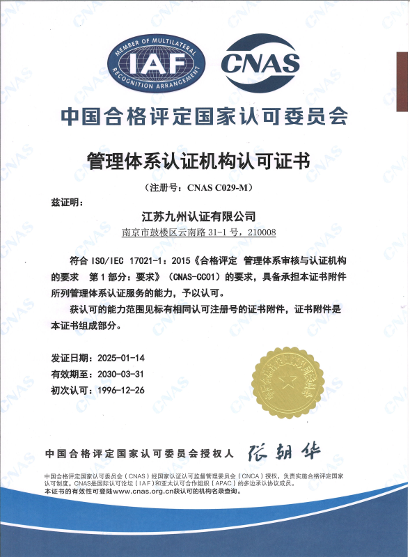 管理體系認可證書-中文