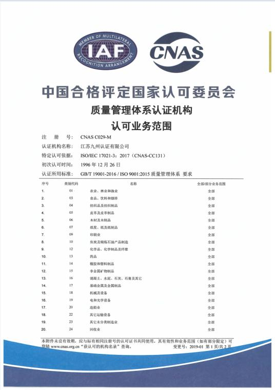 質量管理體系認可業(yè)務范圍-中文2