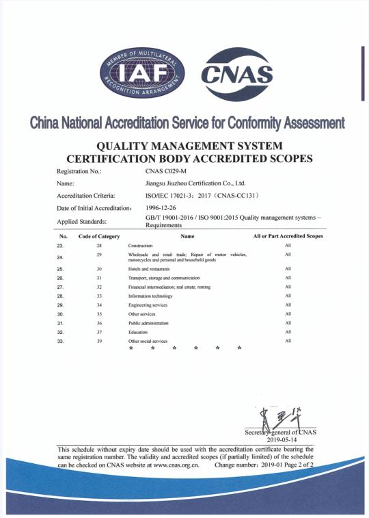質量管理體系認可業(yè)務范圍-英文2