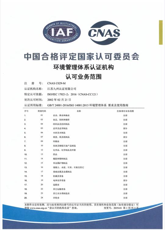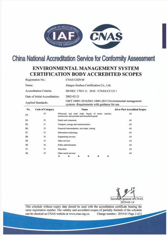 環(huán)境管理體系認可業(yè)務范圍-中文2