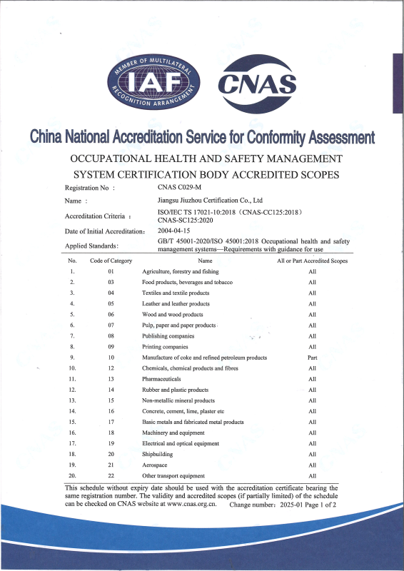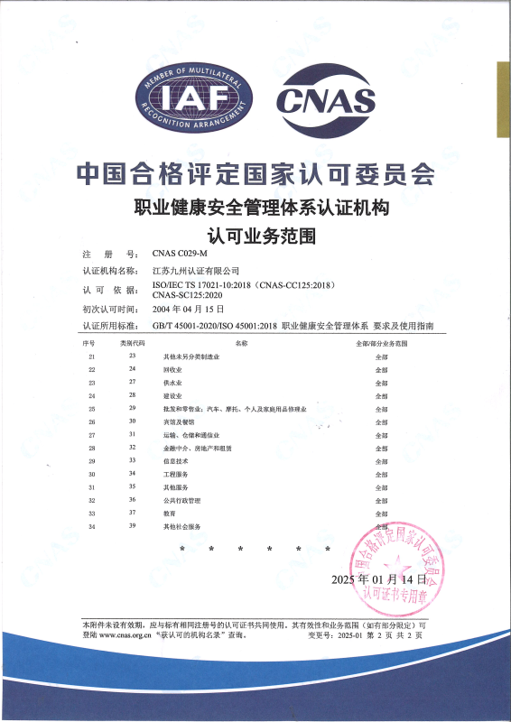 職業(yè)健康安全管理體系認可業(yè)務范圍-中文2